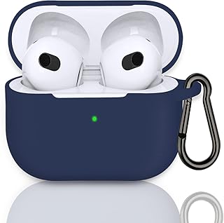 MATEPROX Hülle Kompatibel mit AirPods 3 Schutzhülle mit Karabiner(Unterstützt kabelloses Laden), Stoßfest Silikonhülle for AirPods 3 Hülle Kompatibel mit AirPods 3rd Generation 2021-Azur blau