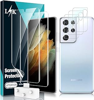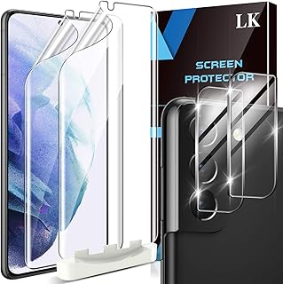 LK 4 Stück Schutzfolie Kompatibel mit Samsung Galaxy S21 Plus und S21 Plus 5G, 2 Kamera Panzerglas und 2 Folie, Blasenfreie TPUDisplayschutzfolie Vollständige Abdeckung Fingerabdruck-ID unterstützen