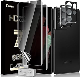 TAURI Schutzfolie Kompatibel Mit Samsung Galaxy S21 Ultra 5G 2 Stück TPU Privacy Folie und 2 Stück Kamera Panzerglas Fingerabdruck-ID unterstützen Blasenfreie Privatsphäre Folie