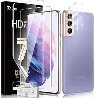 TAURI Schutzfolie Kompatibel Mit Samsung Galaxy S21 und S21 5G 2 Stück S21 Schutzfolie TPU und 2 Stück S21 Kamera Panzerglas Fingerabdruck-ID unterstützen Blasenfreie Klar HD Folie